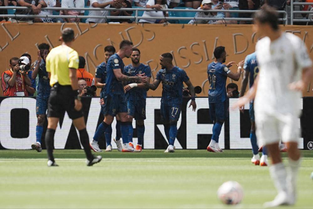 姆巴佩因病缺阵,面对富得流油的利雅得新月,皇马却丝毫没有展现出欧冠之王的半点风采,上半场居然被新月压着打,虽然皇马依靠快速反击由加西亚拔得头筹,但新月很快就内维斯点射扳平比分。