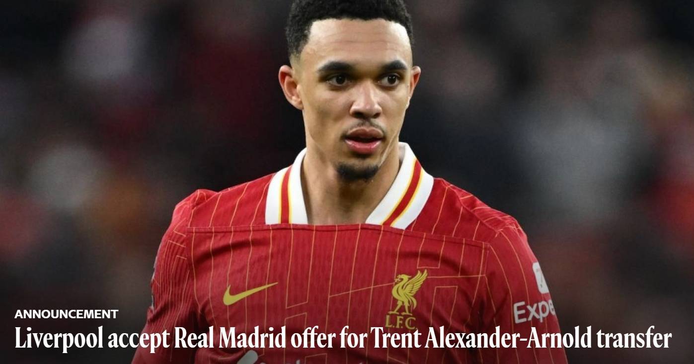 利物浦足球俱乐部确认,已接受皇家马德里对特伦特·亚历山大-阿诺德的转会报价,转会将在6月转会窗口开启时完成。