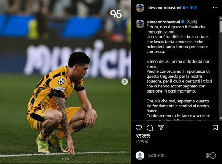 巴斯托尼社媒谈欧冠决赛失利:将继续战斗,书写故事的新篇章