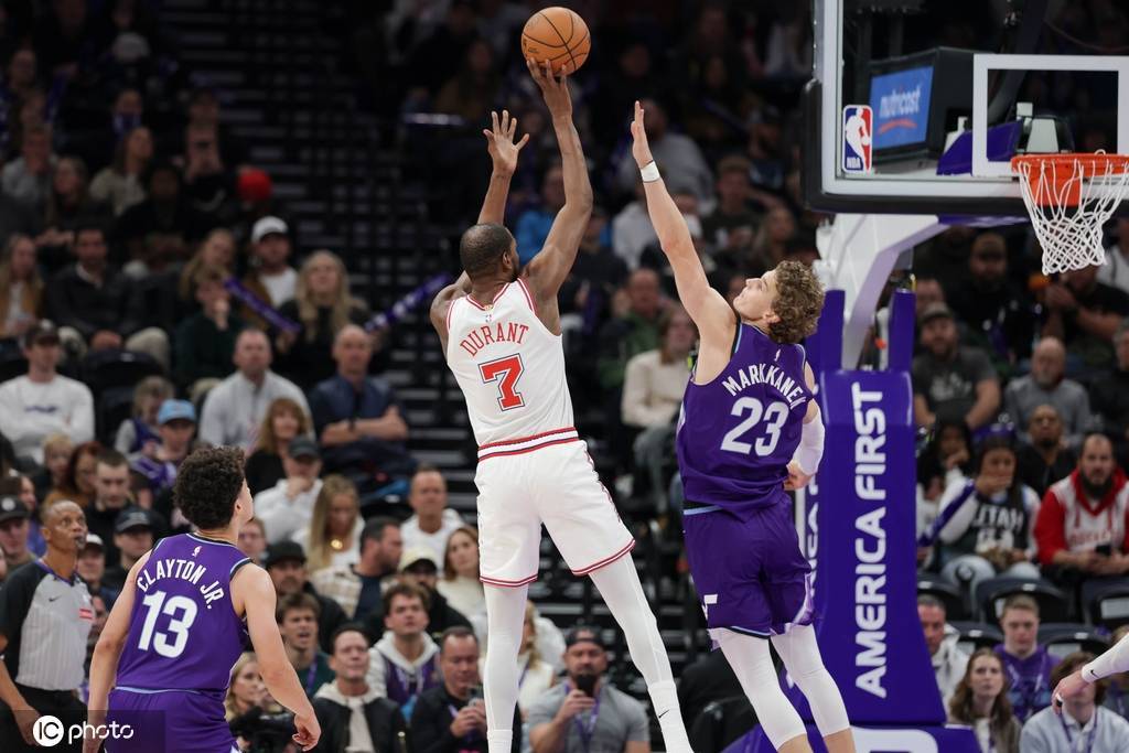 杜兰特三节打卡、满面笑容的入账25+,而在对面,爵士球员在火箭严防下却没有一人得分上20。尤其是外线的主攻手基昂特-乔治还被封锁到6投0中一分未得。